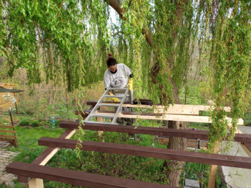 Začal jsem se inspirovat na internetu, abych využil příležitost pořádně. Jedna z nejdůležitějších inspirací byla nestavět malý a pestrobarevný domeček pro děti. Takový bude užitečný jen na omezený čas. Lepší je postavit něco velkého, kam se vejde i dospělý člověk. Hezky to pak roste s dítětem a potom může sloužit třeba jako pozorovatelna ptáků.